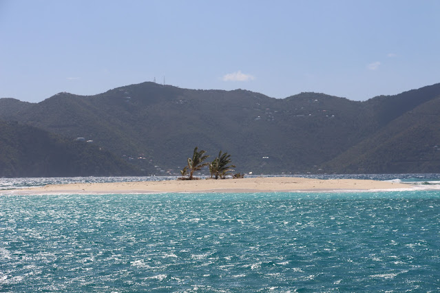 Après le déjeuner, nous partons vers Saba Rock avec Wild Thing 2 en annexe pour un snorkeling réputé mais le vent et le courant sont trop fort, l'eau est claire mais pas un poisson en vue. Nico croise deux raies un peu plus loin mais Dunoche ayant rencontré des requins marteaux un peu plus loin dans le récif à l'entrée de Gorda Sound, je ne suis pas à l'aise de rester dans l'eau ...